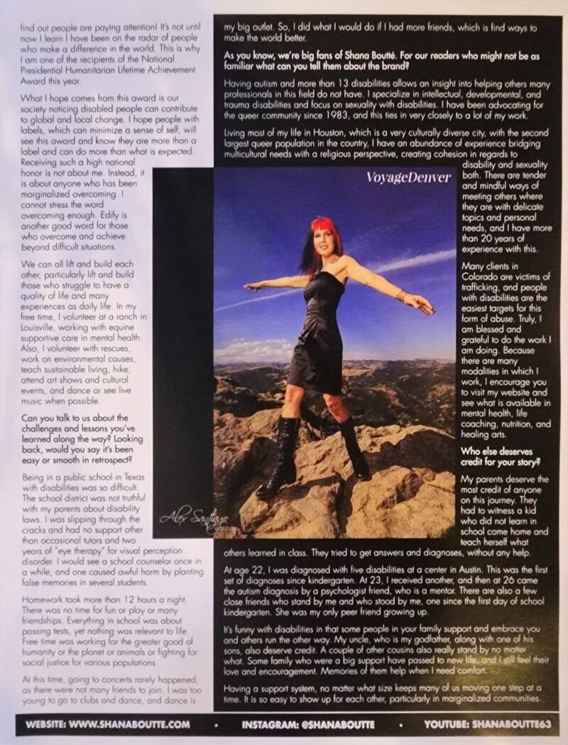 She appeared as a guest on the nationally televised show “Dr. Delagraentiss Presents” six times. During high school, she spoke to disabled students at various junior high and high schools greater Syracuse area regarding transitiong into high school and support services for disabilities available in New York public schools, as well as what to expect from peers, teachers, other school leaders and disability service providers within districts. Some conferences where she presents include Texas State Autism Conference, Sam Houston State University, Council for Exceptional Children at Sam Houston State University, Denver Academy. Other conferences include Driscoll Children’s Hospital (Key Note), ESC 2 (Key Note), Houston Chapter of the Autism Society of American (Key Note), Focus Initiative (Key Note). ASPPIE of Houston (Key Note), Houston Chapter of the ASA (Key Note), Anime Matsuri Autism Panel, North West Chapter of the ASA (Key Note), Firefly Autism (Key Note) and Naropa University. Shāna was a key note for the North American conference for homeopathic neurological developmental resolutions. She was also included as the sole mental health professional on the internationally broadcast forum regarding the exploitation and sexual abuse of women and trans individuals in the music industry which was organized and hosted by international DJ, Lea Luna. For decades, Ambassador Shāna has been teaching various modeling boot camps and self-improvement workshops. Some speaking topics Shana is most recognized for include “Surviving, Then Thriving, with Autism and Learning Disabilities”, “Preparing for Higher Education with Disabilities”, “Introduction to Autism and MTHFR”, “Females with Autism” and “Bullying, Abuse, Sexual Abuse and Sexuality with Autism”